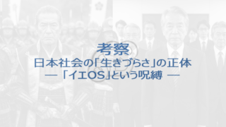 個人的考察日本社会の「生きづらさ」の正体 ── 私たちの脳で走り続ける「イエOS」という呪縛 日本社会に漂う閉塞感の正体は、明治期にインストールされた「イエOS」というシステムにありました。個人の不安を生産性に変え、異能を排除する組織構造の配線図を解剖。なぜ優秀な人ほど組織を去るのか? 現代のバグと、在野に沈殿する知性の逆襲について、独自の視点から考察します。 2026.02.14個人的考察