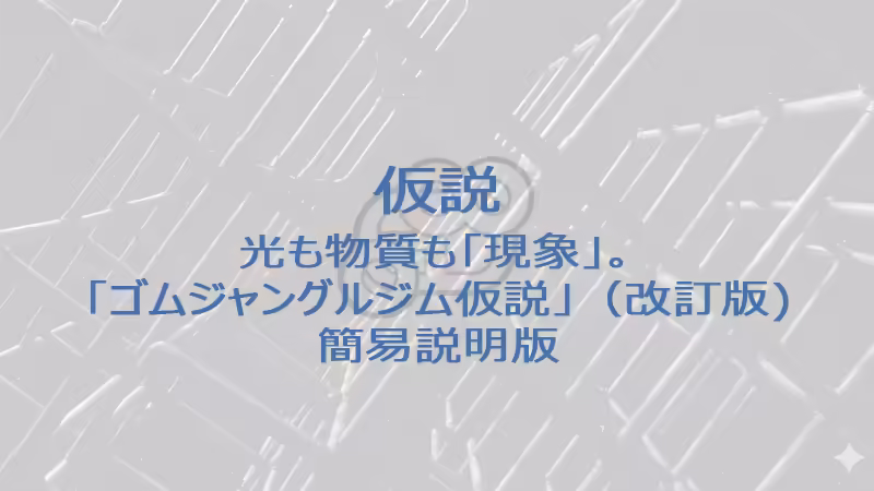 (この記事は、【論文】:ゴムジャングルジム仮説【2025年11月16日 改訂版】の簡易説明版です。論文はこちら→【論文】:ゴムジャングルジム仮説 — 場の量子論から量子重力への哲学的アプローチ【2025年11月16日 改訂版】)