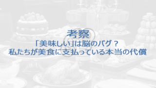個人的考察【考察】「美味しい」は脳のバグ?私たちが美食に支払っている本当の代償 この記事は、「【論文】:報酬系回路の暴走と「美食」という名の認知バグ 〜進化のレガシーコードがいかにして現代人をハックしたか〜」の簡易説明版です。論文はこちら→【論文】報酬系回路の暴走と「美食」という名の認知バグ 〜進化のレガシーコードがい... 2026.02.13個人的考察