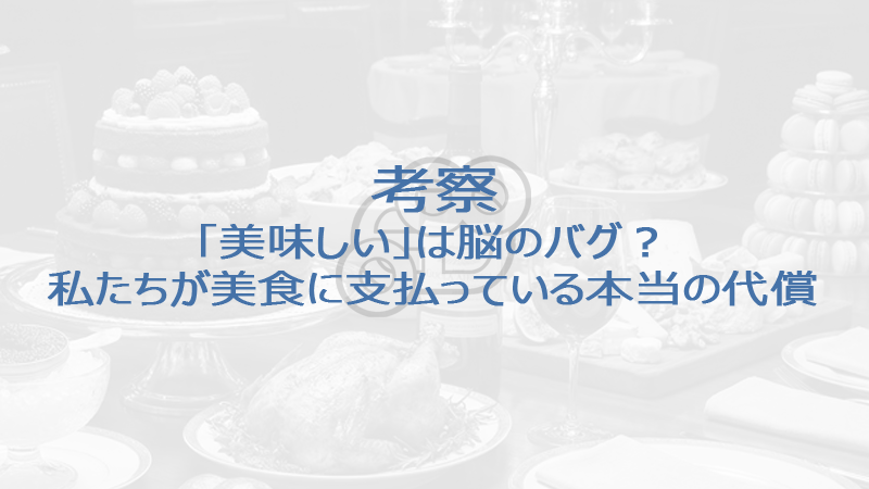 その時、私の中で一つのスコトーマ(心理的盲点)が外れました。私たちが「美味しいもの」と呼び、人生の豊かさだと思い込んでいるものの正体。それは、進化の過程で置き去りにされた「脳のバグ」に過ぎないのではないか、ということです。